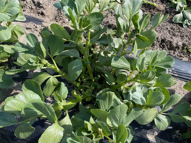 芽かきを終え、輪状に展開したそら豆。 太陽光が細部まで行き渡り、風通しもよくなることで、他の植物が追いつけない速さで成長しています。 小さな白い花柄が見え始める頃。 花につられて小さな虫たちも活動し始 …