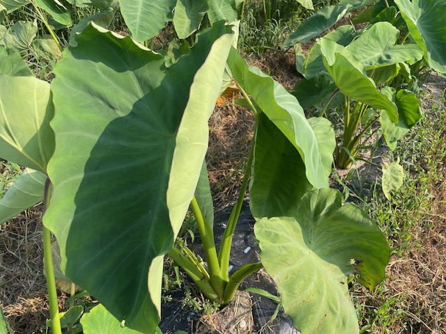 雨が降った後や、予防をするために一度でも入ったら最後、全身ずぶ濡れ確定の里芋ジャングル。