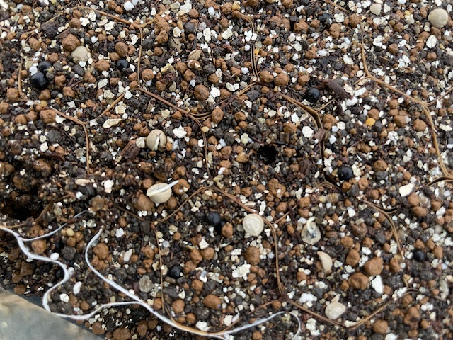 ここだけ種が覆土の上に出てきちゃっているけど、ある意味観察しやすくてよいかも。